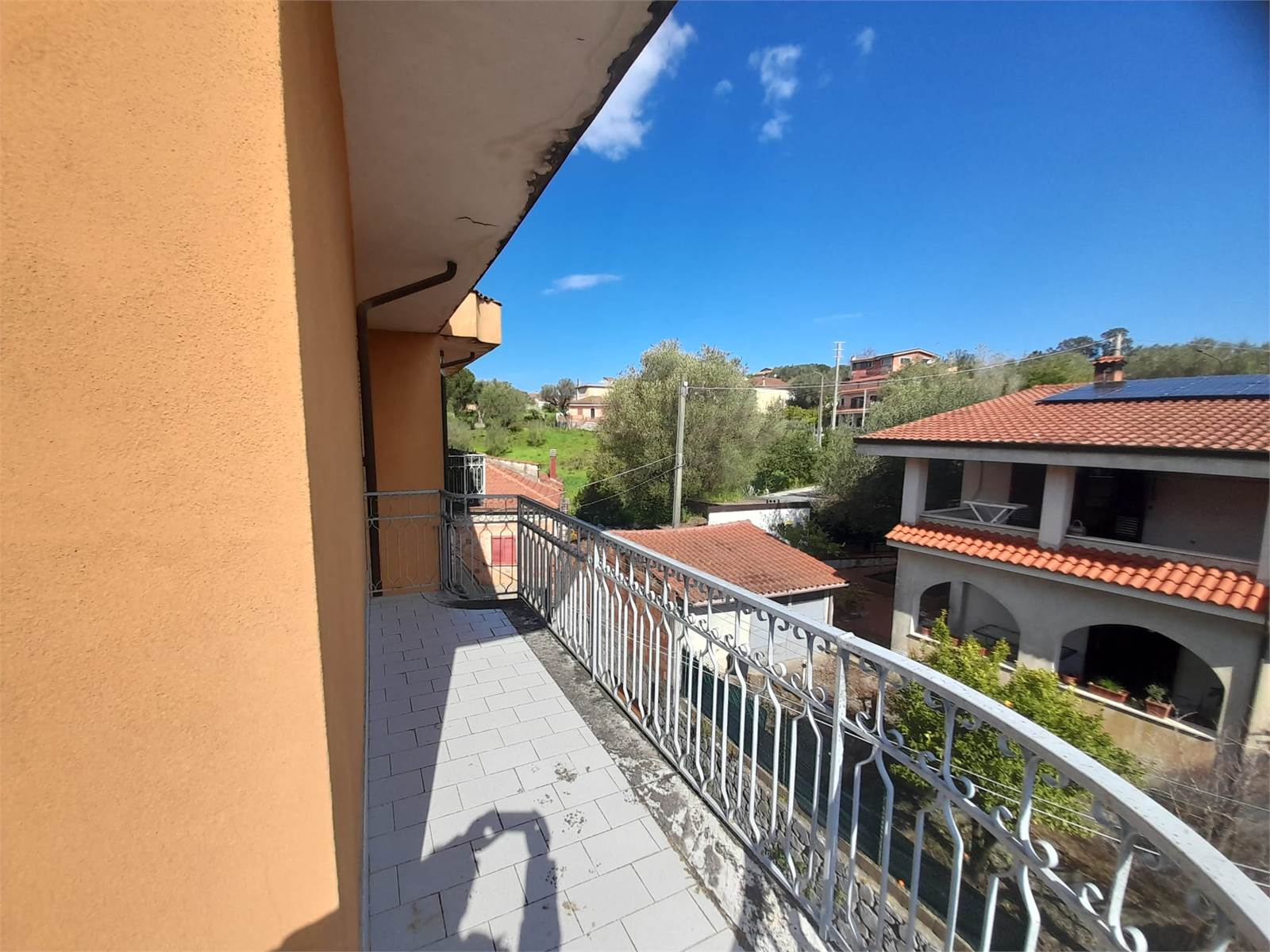 L'appartamento offre un ingresso accogliente che conduce a un luminoso soggiorno-pranzo, ideale per momenti di convivialità. Due camere da letto spaziose garantiscono il massimo comfort, mentre il bagno è funzionale e ben curato. La caratteristica principale è l'ampia balconata che circonda l'immobile, perfetta per godere di piacevoli momenti all'aperto.